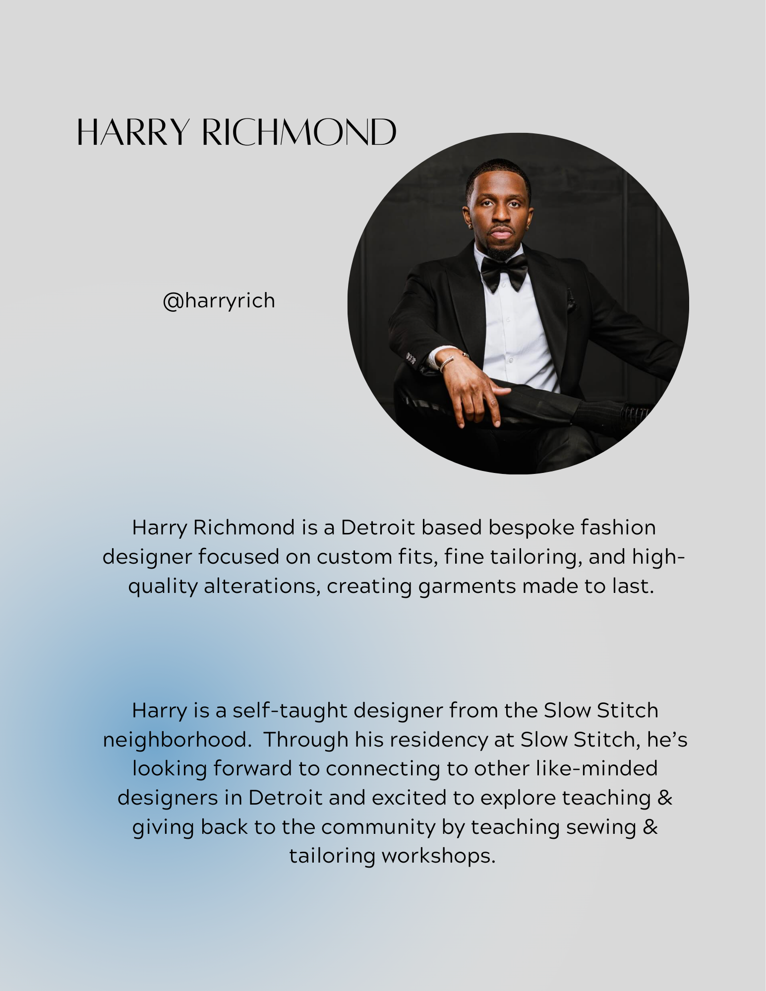 Residents are selected through an application process and join a supportive collective of makers dedicated to building a Slow Fashion future. Together, we share studio space, tools, materials, and monthly feedback gatherings, creating an environment that feels like a self-led master’s program—rooted in practice, reflection, and shared growth.